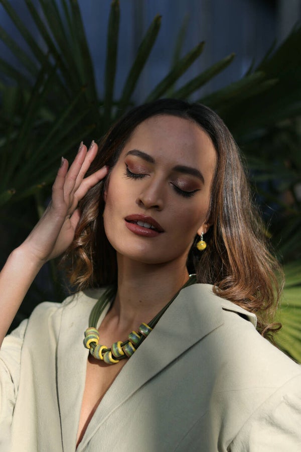 Voeg een vleugje gedurfde elegantie toe aan je look met deze handgemaakte kazuri keramiek oorbel in een rijke diep donkerrode kleur.