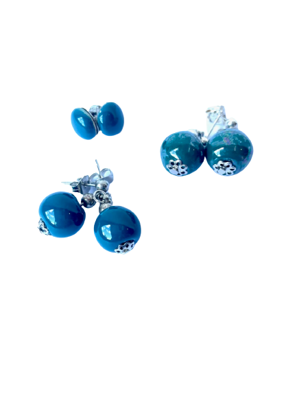 Mix van oorringen Drop & Stud round in Petrolgroen