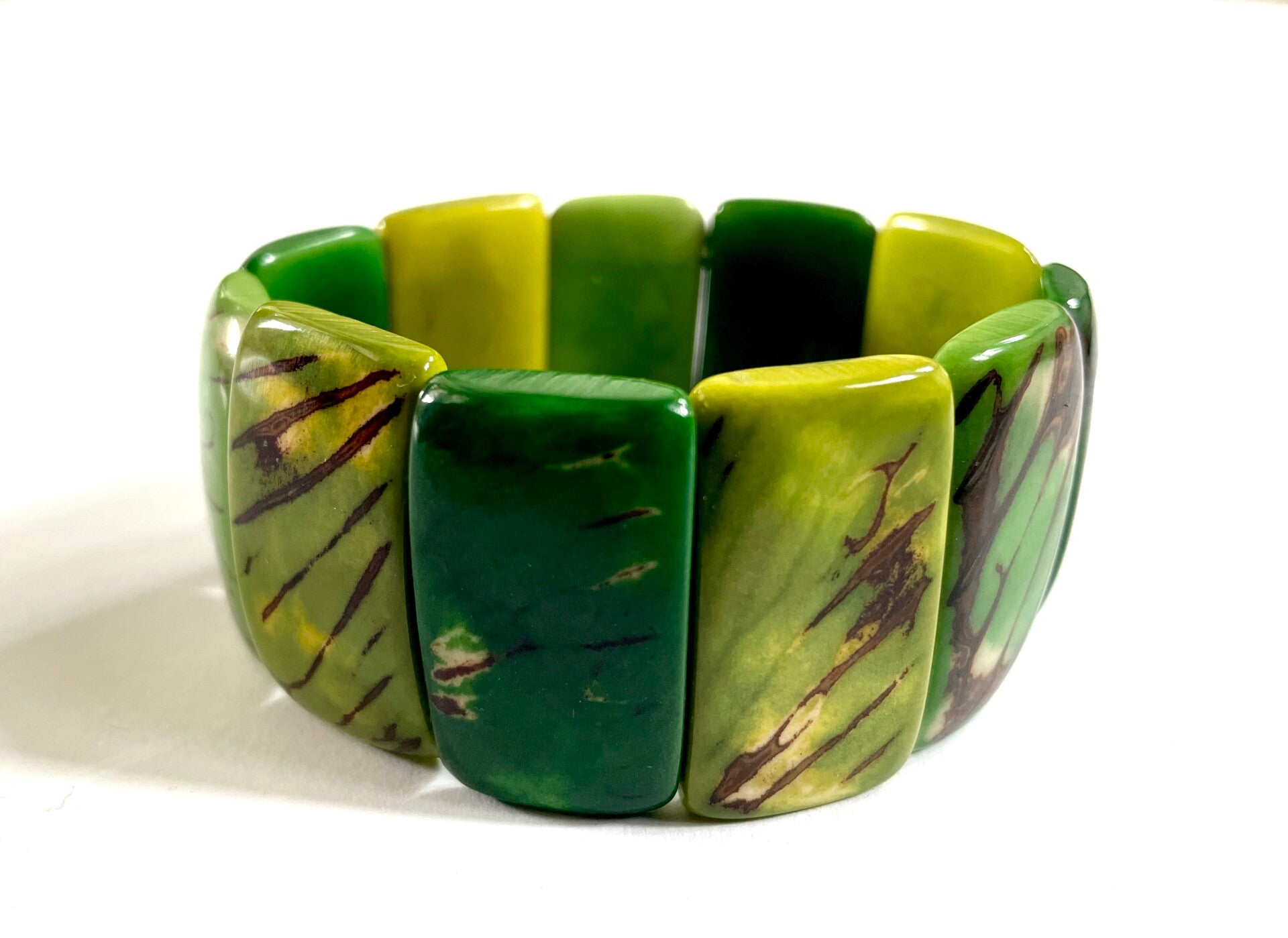 Tagua armband, gemaakt van de taguanoot. De barst van de noot is nog zichtbaar waardoor het een natuurlijke uitstraling heeft.