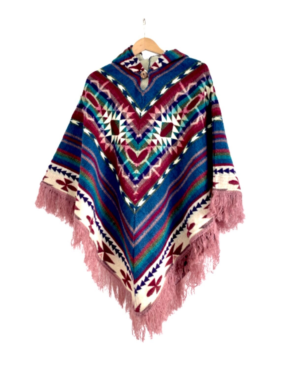 Poncho | Blauw met Roze | Alpacawol | Native patroon