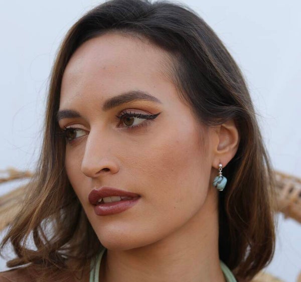 Voeg een frisse en stijlvolle flair toe aan je look met deze handgemaakte oorbelhangers in blauw met wit. De ronde kazuri keramiek kraal is met zorg gemaakt en handbeschilderd.