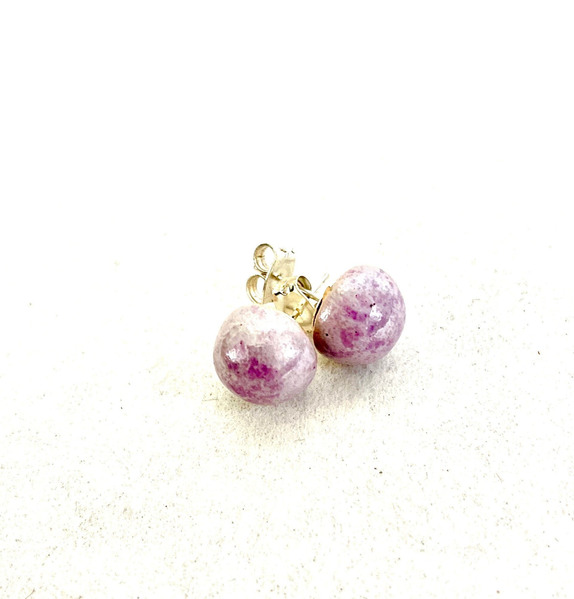 Oorbel stud: Een steker met een ronde keramiek kraal. Kleur: Lila met violet.